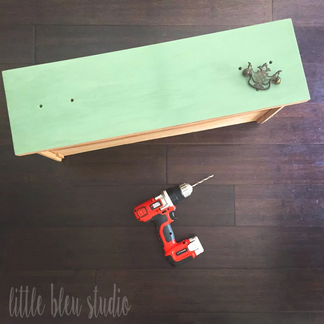 Some of the paint got into the holes for the drawer pulls, so I got out my drill :-) and fixed the holes!