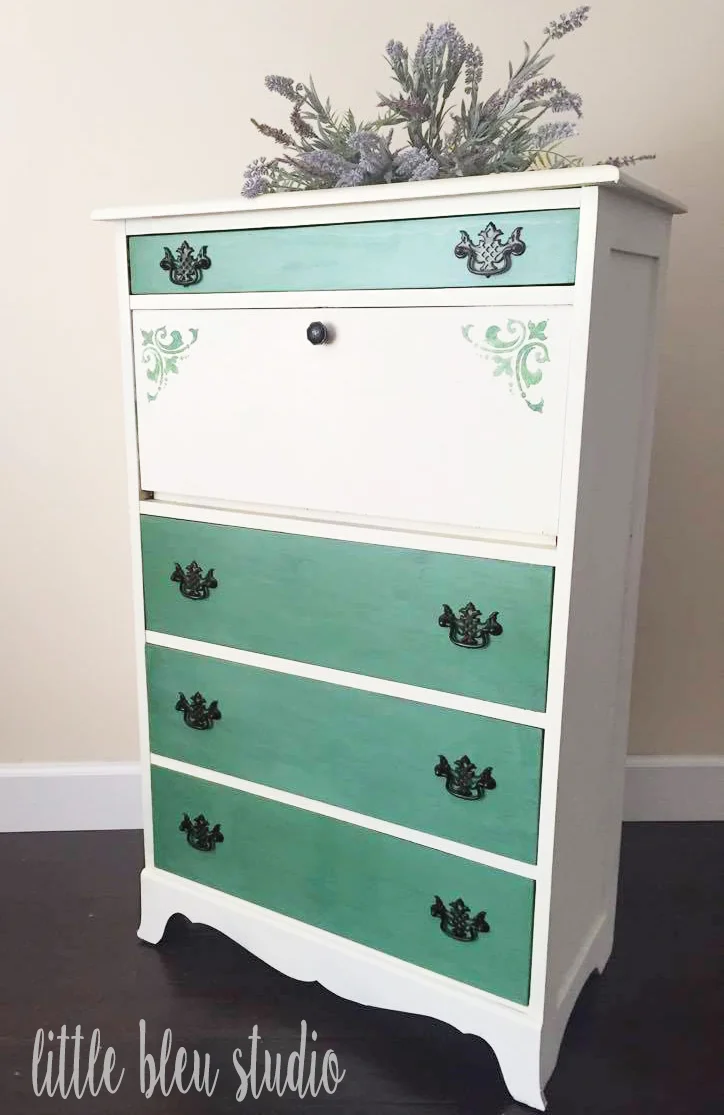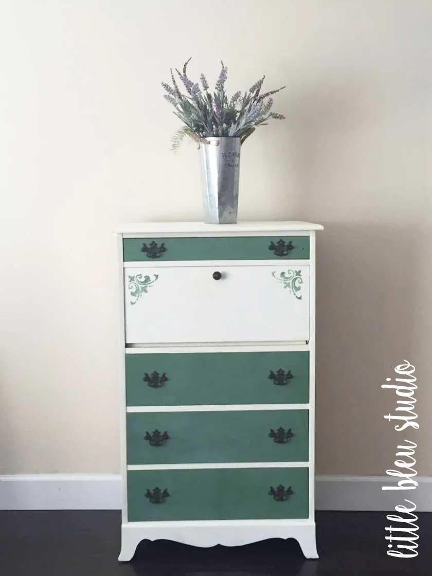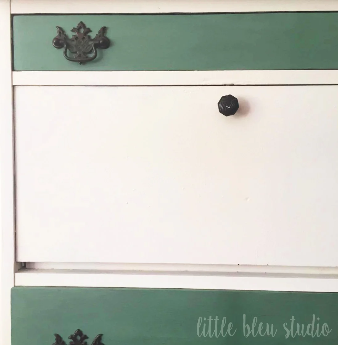 Then I painted the drawers with this chalky green color (Also from the Plucky Peacock!)